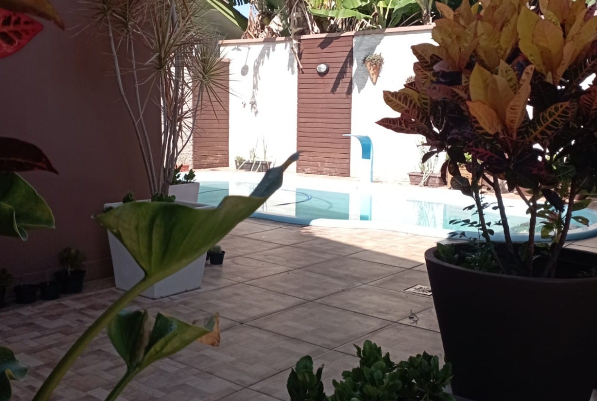 Casa mista com quiosque totalizando 122,21m² em terreno de 390m² (13,00 x 30,00m). Propriedade única com casa principal em madeira e área de alvenaria com excelente área de lazer.