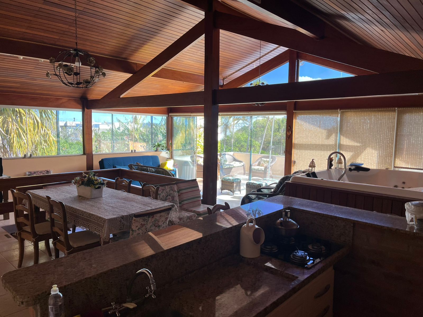 - Sala de estar, jantar e estúdio integrados em conceito aberto